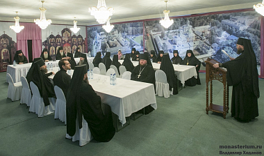 Открывая встречу в Екатерининском монастыре, благочинный монастырей Московской епархии епископ Серпуховской Роман (Гаврилов), викарий Московской епархии, напомнил настоятелям и настоятельницам обителей слова Святейшего Патриарха Московского и всея Руси Кирилла о том, что возрождение русского монашества зависит от игуменов и игумений нынешних обителей.