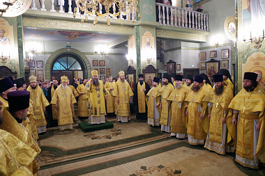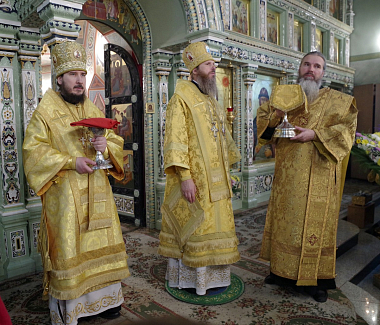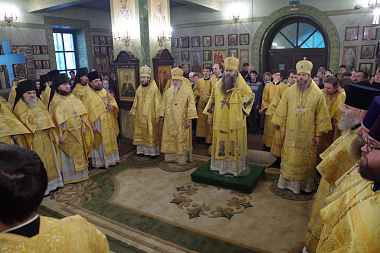 Его Высокопреосвященству сослужили епископ Городецкий и Ветлужский Августин, епископ Выксунский и Павловский Варнава, епископ Лысковский и Лукояновский Силуан, секретарь Архиерейского совета Нижегородской митрополии протоиерей Сергий Матвеев, секретарь Городецкой епархии иерей Илия Тюрин, настоятель Высоковского Успенского мужского монастыря игумен Александр (Ионов), другие клирики Городецкой епархии.