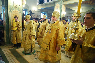 Его Высокопреосвященству сослужили епископ Городецкий и Ветлужский Августин, викарии Нижегородской епархии епископ Балахнинский Илия и епископ Дальнеконстантиновский Филарет, епископ Выксунский и Павловский Варнава, епископ Лысковский и Лукояновский Силуан, секретарь Архиерейского совета Нижегородской митрополии протоиерей Сергий Матвеев, клирики Нижегородской и Городецкой епархий.
