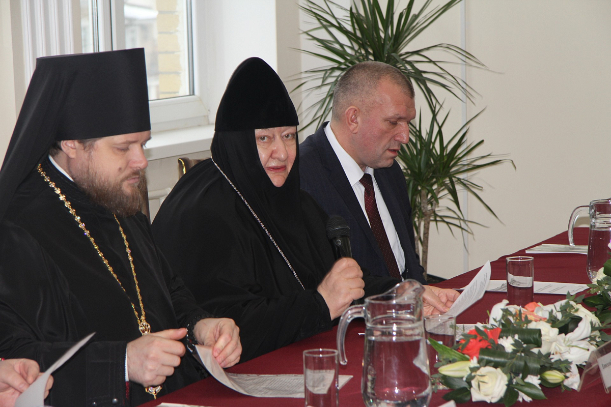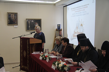 Н.Е. Ячник, директор Музейно-выставочного центра им. И.А. Солдатенкова, заслуженный работник культуры РФ сделала доклад о сохранении традиционных культурных ценностей через музейное пространство, особенно подчеркивая значимость в этом деле церковных музеев, в том числе создающегося при Свято-Никольском Черноостровском женском монастыре в здании, где проходила конференция, интерактивного музея «Победоносное сражение под Малоярославцем в Отечественной войне 1812 года» на средства гранта Президентского фонда.