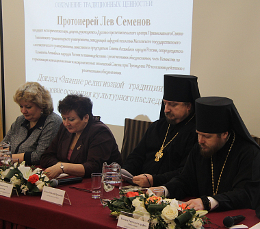 Протоиерей Лев Семенов, кандидат исторических наук, доцент, руководитель Духовно-просветительского центра Православного Свято-Тихоновского гуманитарного университета, заведующий кафедрой теологии Московского государственного лингвистического университета, заместитель председателя Совета Ассамблеи народов России, сопредседатель Комитета Ассамблеи народов России по взаимодействию с религиозными объединениями, член Комиссии по гармонизации межнациональных и межрелигиозных отношений Совета при Президенте РФ по взаимодействию с религиозными объединениями, предварил свой доклад на пленарном заседании исполнением задания, вверенного ему Советом Ассамблеи России по взаимодействию с религиозными объединениями. В пленарном докладе отец Лев обрисовал значимость взаимодействия религиозных объединений, относящихся к традиционным религиям, друг с другом и с общественными и государственными структурами для защиты духовно-нравственных ценностей.