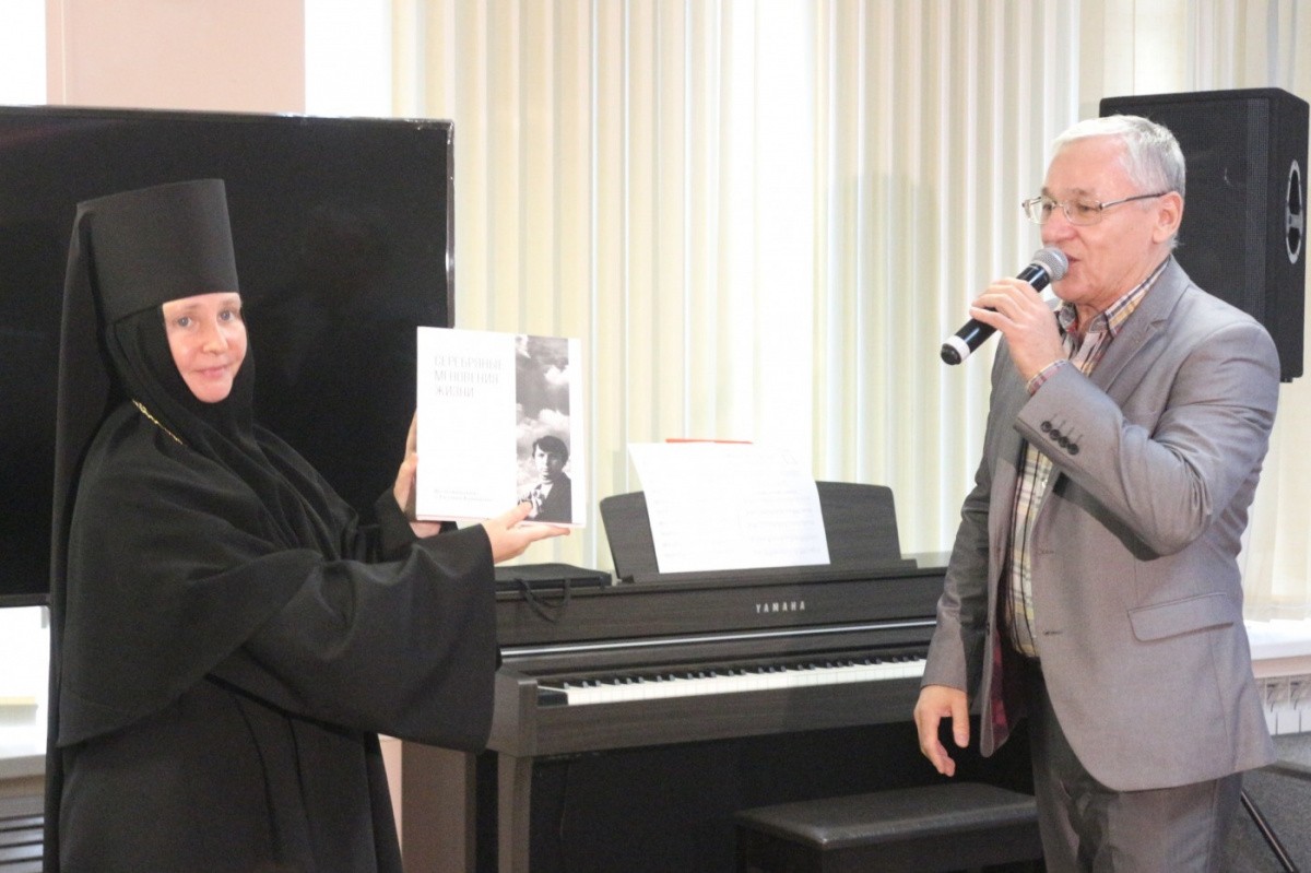 О сотрудничестве с монастырем рассказал заместитель директора Информационно-аналитического центра культуры и туризма Нурислан Ибрагимов. Он выразил надежду, что в будущем совместных мероприятий будет больше, и вручил в подарок игумении Анне книгу «Серебряные мгновения жизни», посвященную известному рязанскому фотохудожнику Евгению Каширину.