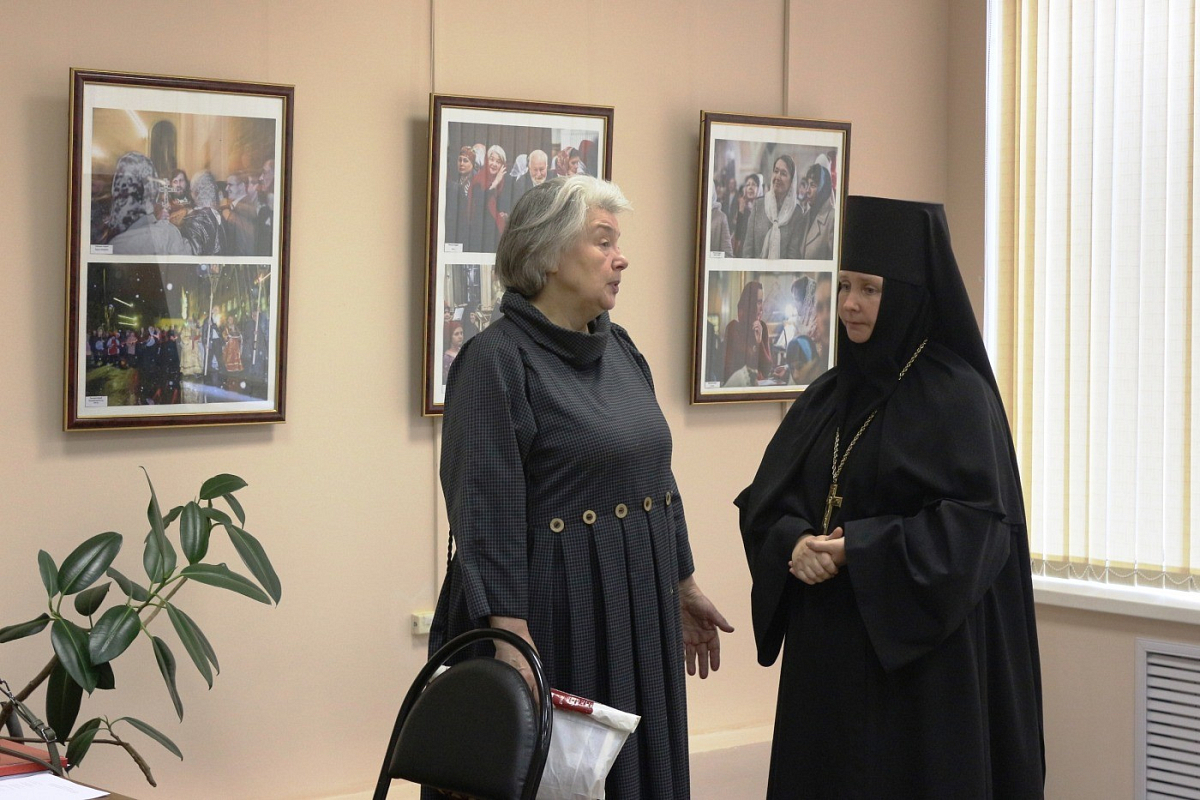 Настоятельница обители игумения Анна (Сычугова) обратилась к собравшихся в зале с приветственным словом. «На наших глазах обитель возрождается, – сказала Ее Высокопреподобие. – Те снимки, которые вы видите, это творческий вклад авторов, которые сделали фотографии с большой любовью и пополнили фотолетопись новыми страницами истории нашей обители».