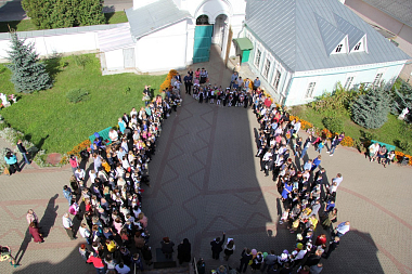 По традиции праздник начался в Спасо-Преображенском соборе монастыря с молебна перед началом учебного года. Совершил его настоятель обители игумен Мелетий (Павлюченков) в сослужении братии в священном сане.
