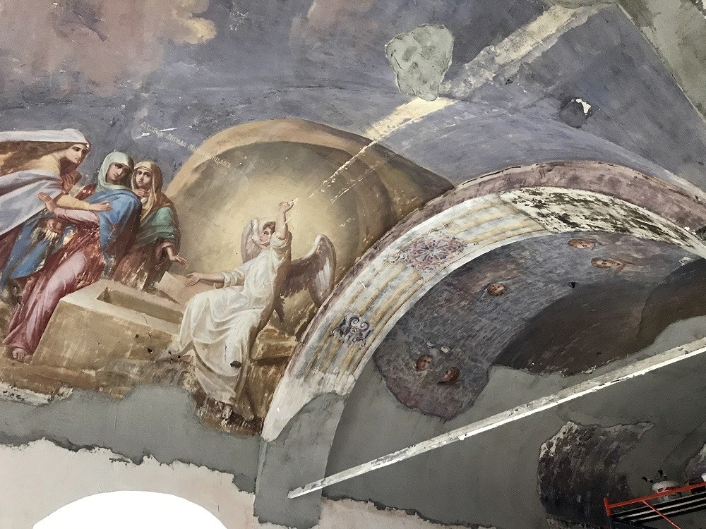 «На данный момент завершены работы по подведению штукатурного слоя в пределах утрат. Сейчас идет процесс подведения грунта. В центральном своде трапезной части храма выполнено укрепление авторской живописи, в частности были расчищены от копоти и промыты расположенные на парусах под куполом изображения четверых евангелистов, копии работ немецкого художника и графика Юлиуса Шнорр фон Карольсфельда, – рассказал Николай Юшков. – В самом центре этого свода производится ремонт авторской кирпичной кладки и воссоздание утраченной. Также начаты укрепление и расчистка свода левого алтаря в трапезной части храма: там открывается изображение ангелов».