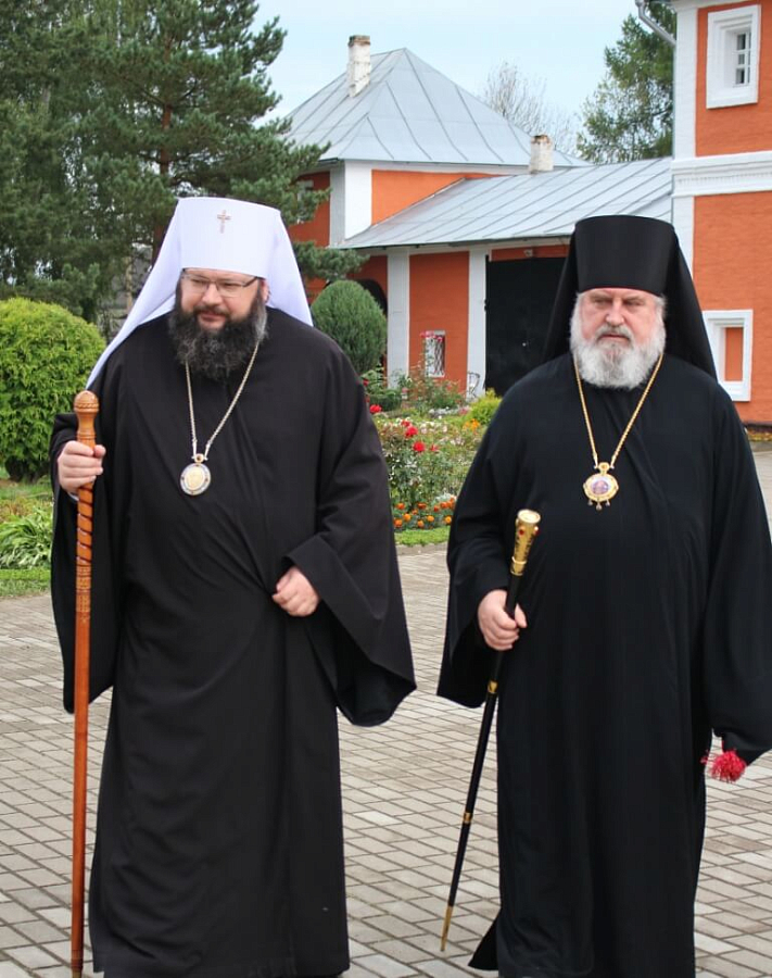 Архипастырям сослужило духовенство Вяземской епархии.