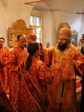 За богослужением молились: настоятельница монастыря игумения Лаврентия (Павлюченкова) с сестрами святой обители, настоятельница Спасо-Богородицкого Одигитриевского женского монастыря игумения Ангелина (Нестерова), многочисленные прихожане.