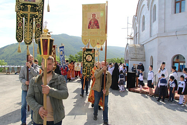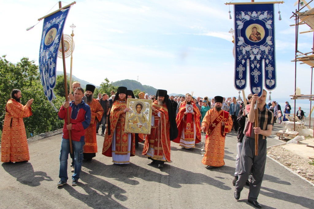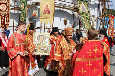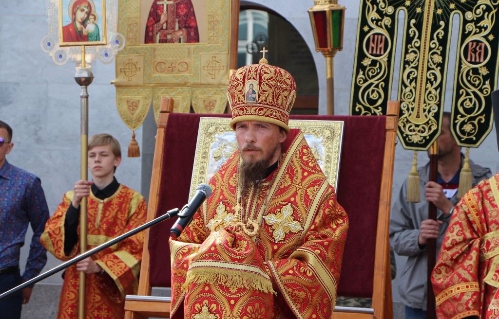 По окончании богослужения прихожане во главе с епископом Феодором прошли крестным ходом вокруг собора.