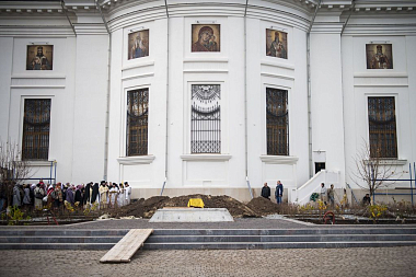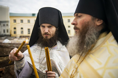 Сегодня малая Пасха, когда соединяются земля и небо. Мы совершаем панихиду над многочисленными останками, обнаруженными при археологических раскопках. Это останки монахинь, на глазах которых закрывалась обитель и разрушался воссоздаваемый ныне собор.