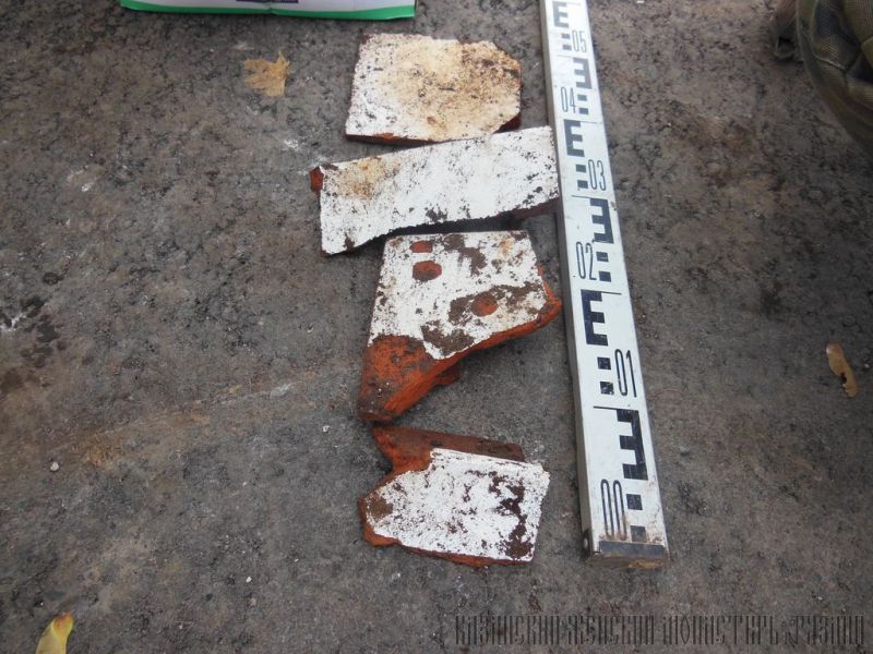 В ходе работ было заложено 6 небольших раскопов размером, примерно, 1х1м – археологи называют их шурфами. Шурфы были заложены на разрушенных в советский период участках кирпичной ограды монастыря. Один из шурфов был разбит на месте предполагаемого расположения угловой монастырской башни.