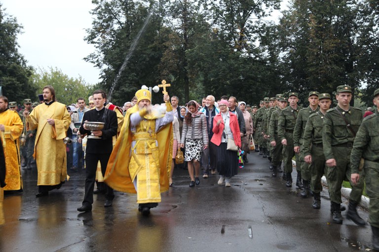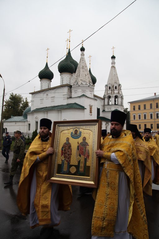 По окончании молебна начался крестный ход с иконой Спаса Нерукотворного из Спасо-Преображенского в Кирилло-Афанасиевский монастырь. Вместе со священнослужителями и прихожанами храмов прошли казаки и воспитанники Ярославского высшего зенитного ракетного училища.