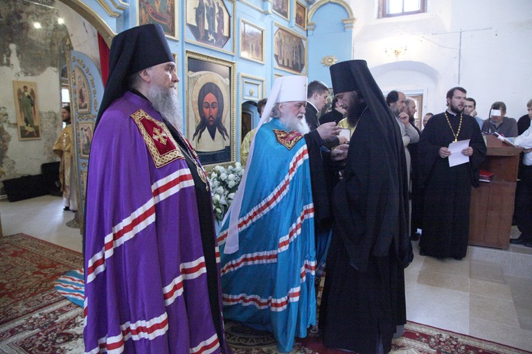 Его Высокопреосвященство удостоил наград Ярославской епархии попечителей обители, потрудившихся в деле возрождения святыни и в организации праздничных торжеств в юбилейный год.