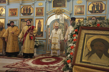 После встречи в Кирилло-Афанасиевском монастыре крестного хода со святынями в Спасо-Пробоинском храме обители была отслужена Божественная литургия.