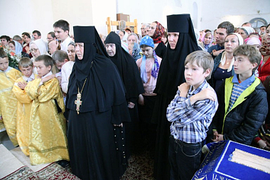 За богослужением молились прихожане обители и храмов города, насельницы Свято-Введенского Толгского и Казанского женского монастырей вместе с игуменией Варварой (Третьяк) и игуменией Екатериной (Гаевой).
