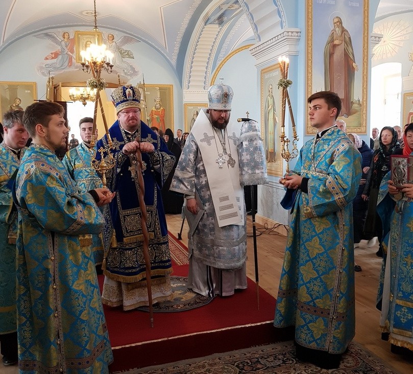 Божественную литургию в соборе Рождества Пресвятой Богородицы возглавил священноархимандрит обители епископ Выборгский и Приозерский Игнатий в сослужении епископа Рославльского и Десногорского Мелетия. Данная Литургия стала первой в верхнем храме после воссоздания в нем фресковой росписи и иконостаса.