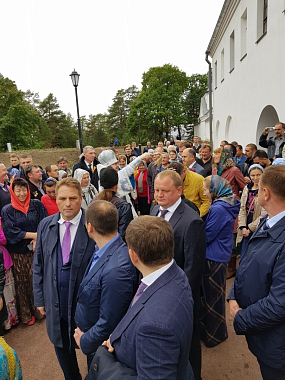 В храме присутствовали представители компании «Роснефть», осуществляющей поддержку реставрационных работ в обители.