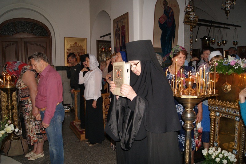 По окончании Литургии иерей Александр Колесов произнес проповедь на тему празднуемого события и поздравил игумению Неониллу с сестрами и прихожан с 15-летием начала богослужений в храме «Всецарица». Особенно радостным было это событие для тех прихожанам, которые 15 лет назад присутствовали на первой праздничной Литургии в только что отделанном и освященном верхнем приделе храма «Всецарица».
