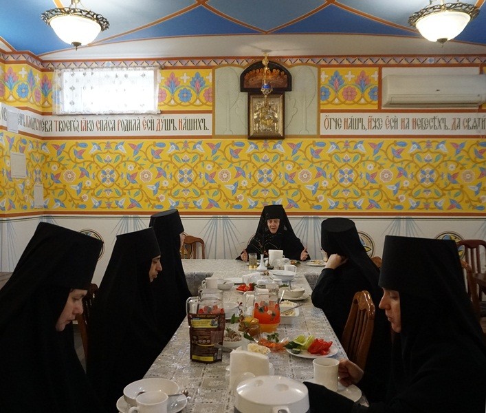 Во время трапезы игумения Неонилла провела с сестрами духовную беседу о празднуемом событии, пользе постоянной молитвы и о развитии монастыря.