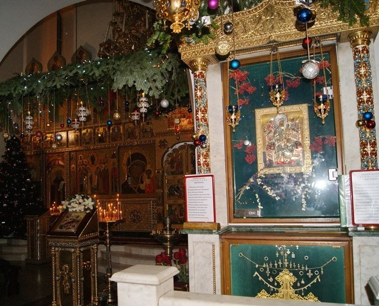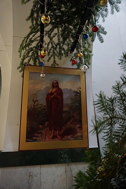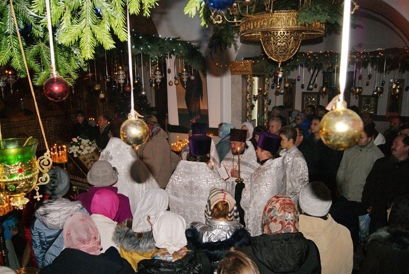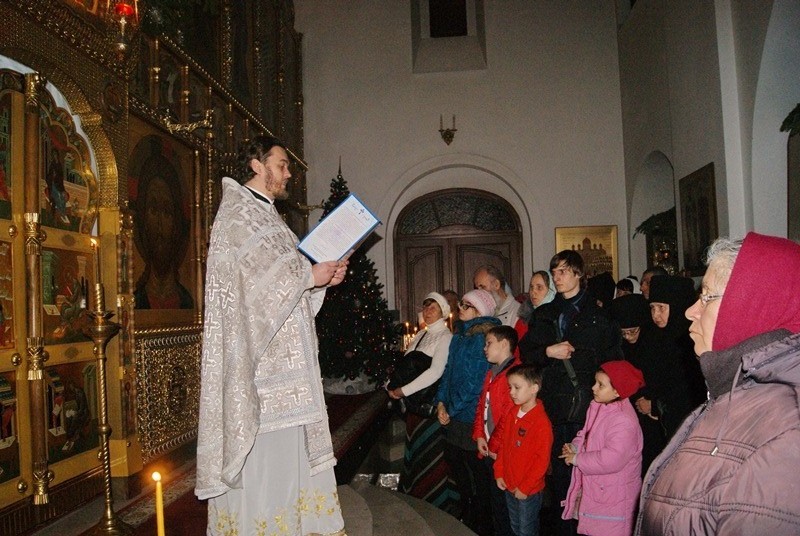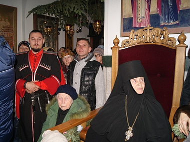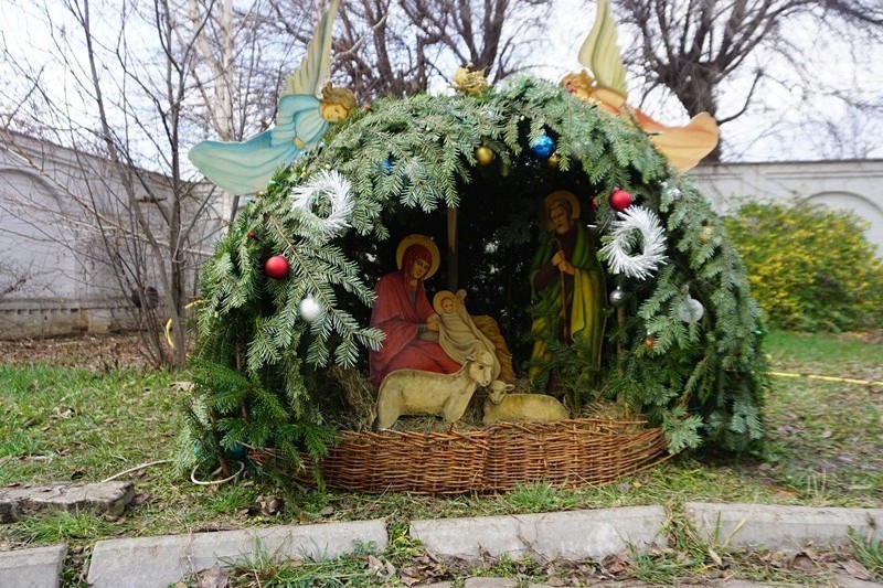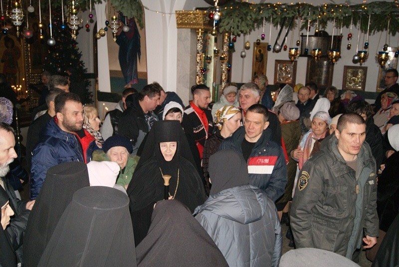 Монастырские храмы были заполнены молящимися. Во дворе перед храмом сестры устроили и украсили рождественский вертеп.