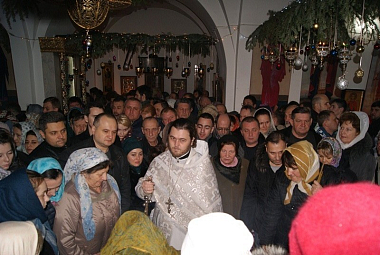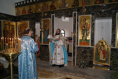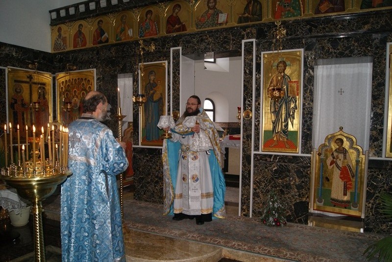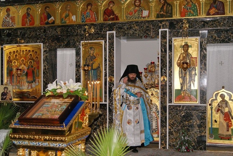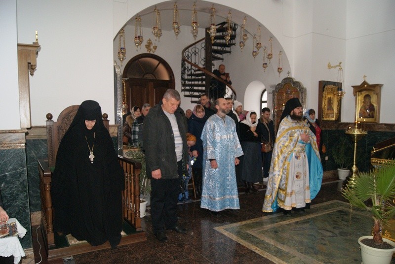 Затем были отслужены две Литургии: в полночь в храме «Всецарица» в центральном монастыре г. Краснодара и утром в Благовещенском храме на подворье.