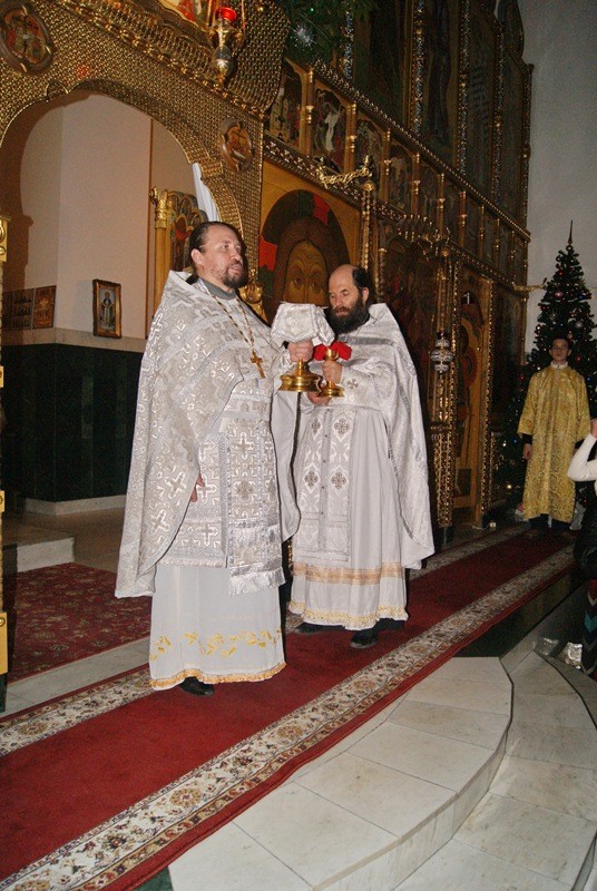 Рождественские послания Святейшего Патриарха Кирилла и митрополита Екатеринодарского и Кубанского Исидора зачитал иерей Александр Колесов.