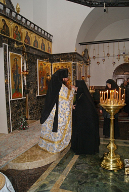 В этот праздничный день настоятельница обители получила много поздравлений с двунадесятым праздником.