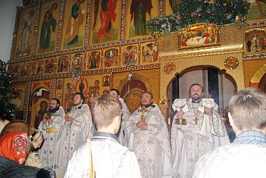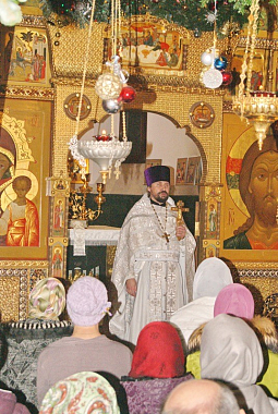 Под византийское пение сестринского хора в убранном рождественскими украшениями главном храме монастыря были совершены всенощное бдение и Божественная литургия. После всенощного бдения состоялся крестный ход вокруг обители. Поскольку на богослужении присутствовало много людей, а погода была теплой, ночная Литургия транслировалась во дворе, где тоже молились прихожане. Во дворе перед храмом сестры устроили и украсили рождественский вертеп.