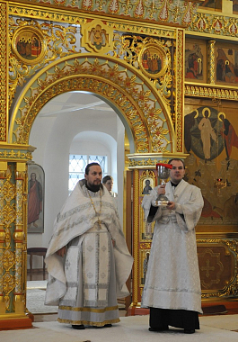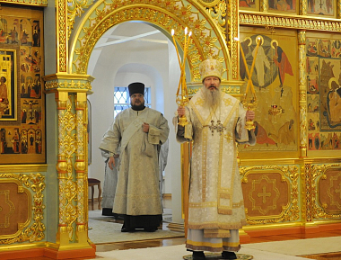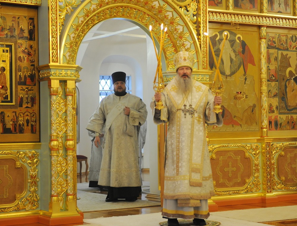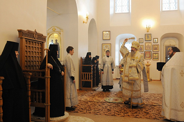 Богослужебные песнопения исполнил архиерейский хор (регент Людмила Телегина).