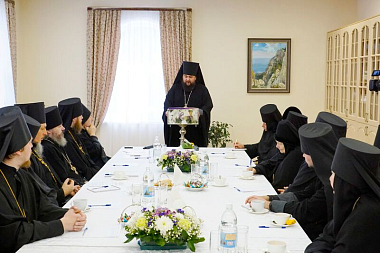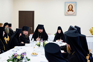 Собрание в самом его начале быстро переросло в братскую встречу. Слова выступавших часто поддерживали и развивали такие участники встречи, как архимандрит Пимен (Адарченко), член Комиссии Синодального отдела по монастырям и монашеству, настоятельница Александро-Невского Ново-Тихвинского женского монастыря г. Екатеринбурга игумения Домника (Коробейникова) и игумен Петр (Мажетов), которые смиренно делились своими размышлениями и духовными выводами.