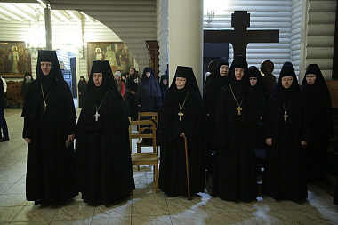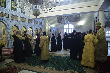 За богослужением молились настоятельница Александро-Невского Ново-Тихвинского женского монастыря игумения Домника (Коробейникова), настоятельница женского Елизаветинского монастыря г. Алапаевска игумения Смарагда (Зыкова), настоятельница Сарсинского Боголюбского женского монастыря игумения Питирима (Лисицына), игумения Верхотурского женского монастыря Покрова Божией Матери матушка Магдалина (Сулеменова).