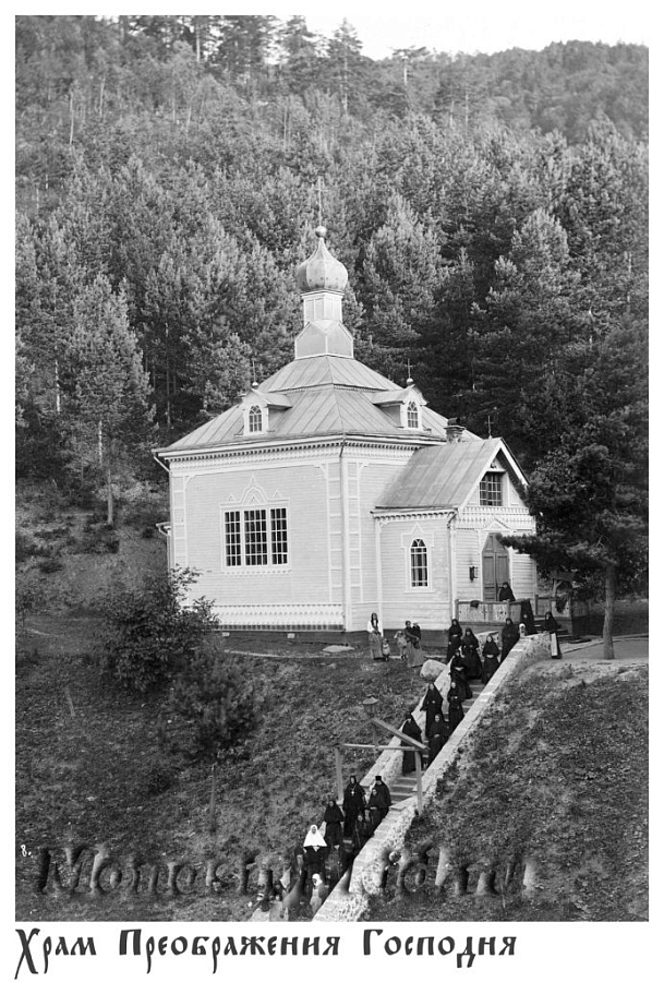 Храм Преображения Господня ведет свою историю с 1874 года. Начало его строительства было заложено первым настоятелем обители отцом Макарием, отличавшимся инженерным талантом. Храм планировался как зимний, в котором можно было бы совершать богослужение зимой, и чтобы, кроме того, в летнее время, при значительном стечении богомольцев, можно было бы совершать две Литургии: раннюю и позднюю.