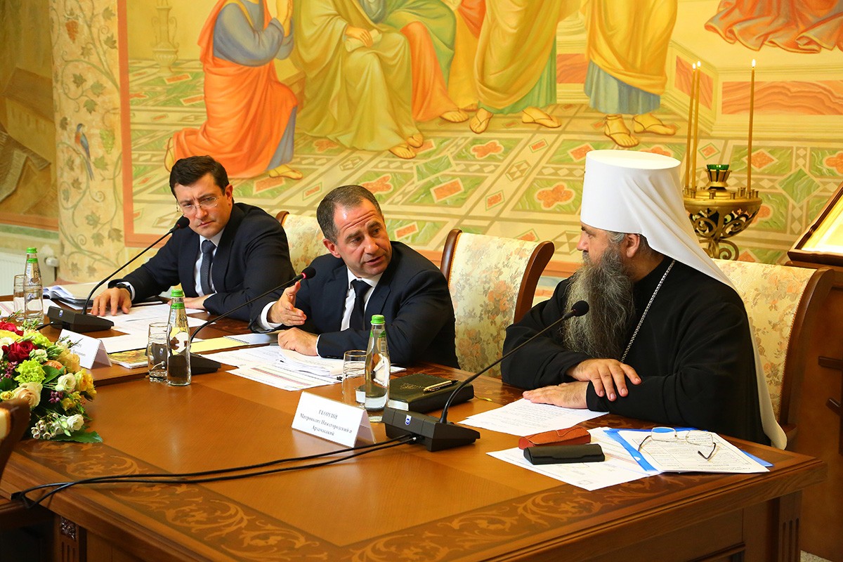 В заседании участвовали заместитель министра финансов России Андрей Иванов, глава Нижегородской области Глеб Никитин, митрополит Нижегородский и Арзамасский Георгий, председатель комитета Совета Федерации по конституционному законодательству и государственному строительству Андрей Клишас, генеральный директор – председатель правления ОАО «РЖД» Олег Белозеров, директор по развитию ПСР Госкорпорации «Росатом» Сергей Обозов.