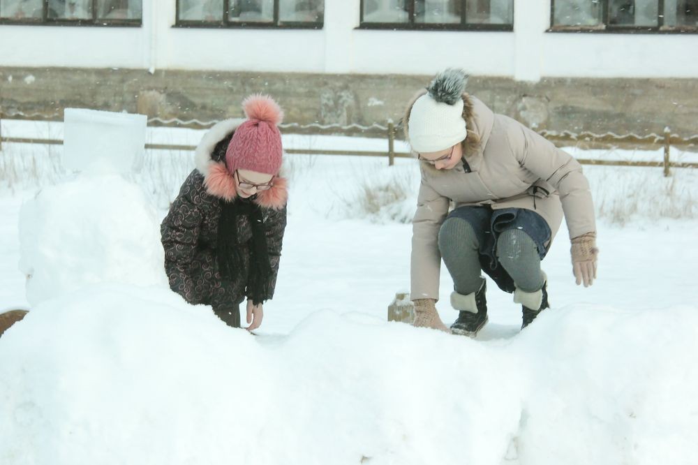 Сегодня, хотя небо было затянуто облаками и солнца не было видно, на улице раздавался веселый детский смех. Маленькие обитатели монастыря нашли себе снежные забавы: лепили снеговиков и спускались с горки на ледянках. Все желающие могли покататься в запряженных расписных санях.