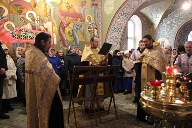 По традиции в этот день служились две Божественных литургии: ночная в надвратном храме святителя Николая и утренняя в главном храме монастыря в честь Успения Пресвятой Богородицы.