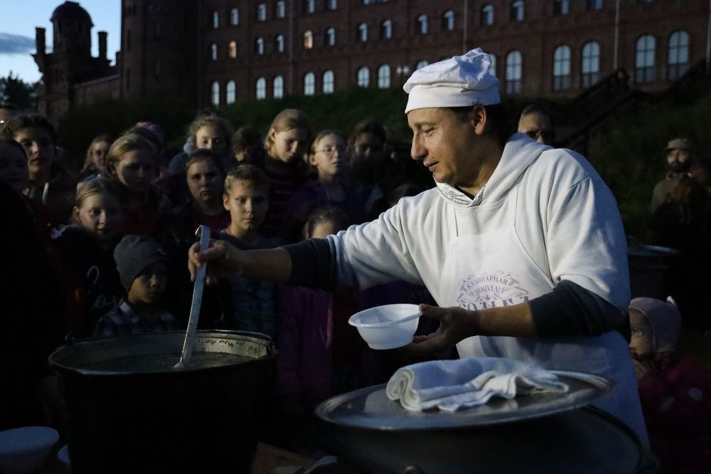 Студентки поварского отделения под руководством ведущего кулинарного шоу «Званый ужин» на канале «РЕН ТВ» Александра Ковалёва готовили блюда из натуральных продуктов с монастырского огорода на костре на берегу реки Сольбы. В меню были «уха по-монастырски» и плов с тыквой.