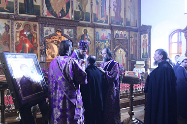 Накануне в монастырь привезли две святыни. Из афонского монастыря Кутлумуш прибыла икона Божией Матери «Пристанище житейских плаваний». Епископ Переславский и Угличский Феодор привез икону преподобного Даниила Переславского. Эти иконы были выставлены для поклонения за богослужением.