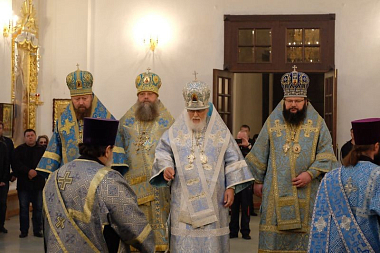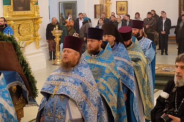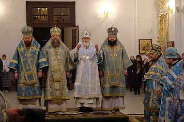 С праздником Корсунской (Ефесской) иконы Божией Матери правящий архипастырь поздравил всех участников богослужения, пожелав укрепления веры в неоскудеваемый источник благодатной помощи Пречистой Девы.