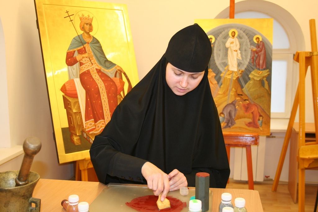 До революции в иконописной мастерской Ново-Тихвинского женского монастыря проходило послушание около ста сестер.