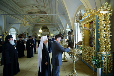 По окончании заседания митрополит Ювеналий и А.Ю. Воробьев посетили Успенский храм Новодевичьего монастыря.