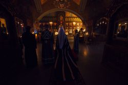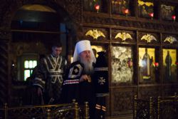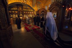 За вечерним богослужением молились настоятельница обители игумения Сергия (Лакатош) с сестрами. Песнопения повечерия исполнял архиерейский мужской хор под управлением Дениса Рогова.