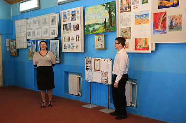 Затем гостям православной гимназии была представлена выставка творческих работ ученика 8 класса Романа Першикова, который осветил свой творческий путь «от простого к сложному». На выставке было представлено 74 рисунка, выполненных в различной технике.