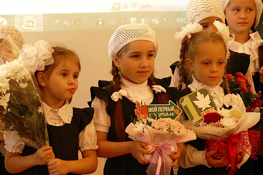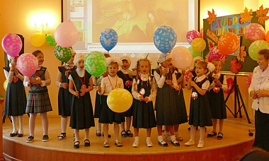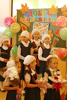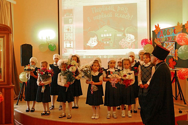 Ко Дню знаний первоклассники готовились заранее. На торжественной линейке они читали стихи, пели песни, отвечали на вопросы о нашей Родине, небесных покровителях, давали ответы не только на русском, но и на английском языках.