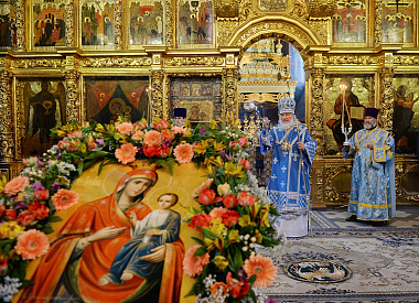 Предстоятель Русской Православной Церкви совершил Божественную литургию в соборном храме Смоленской иконы Божией Матери.