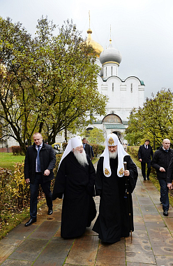 По окончании Литургии Святейший Патриарх Московский и всея Руси Кирилл посетил восстанавливаемый храм Усекновения главы Иоанна Предтечи близ восточной стены Новодевичьего монастыря.