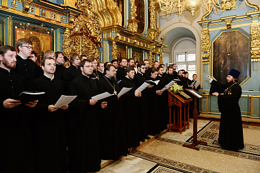 Богослужебные песнопения исполнил хор духовенства Московской областной епархии (регент священник Сергий Голев).