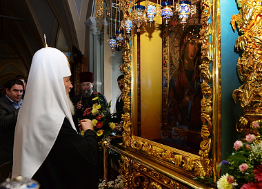 Предстоятель Русской Церкви совершил славление Иверской иконе Божией Матери.