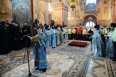 Апостольское зачало на Литургии читал Феодор Гришаев, одиннадцатилетний пономарь Новодевичьего монастыря, воспитанник Воскресной школы при Новодевичьем монастыре.