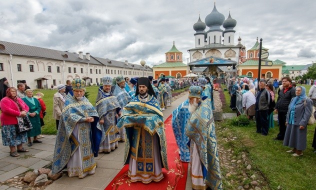 Тихвинский монастырь был основан в 1560 году для Тихвинской иконы Божией Матери, чудесно обретенной в 1383 году: образ явился рыбакам над Ладожским озером, рядом со Старой Ладогой. В середине 1920-х обитель была закрыта и разорена. Во время войны гитлеровцы вывезли икону. Она попала в Прибалтику, затем в Германию, а оттуда в США. В 1995 году монастырь был передан Русской Православной Церкви, началось восстановление Успенского собора. Главная святыня обители была возвращена в Россию в 2004 году.