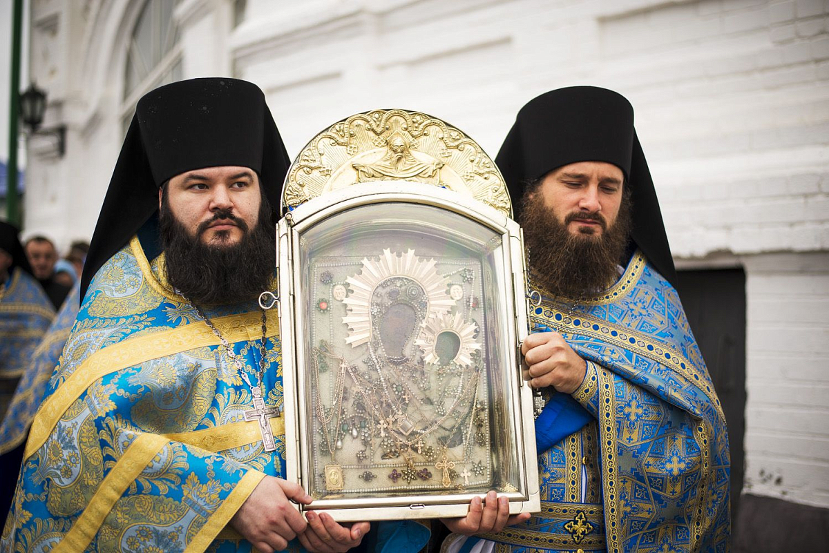 После заамвонной молитвы духовенство и верующие прошли крестным ходом по территории монастыря с чествуемым ныне образом Царицы Небесной и храмовыми иконами всех церквей Раифской обители.