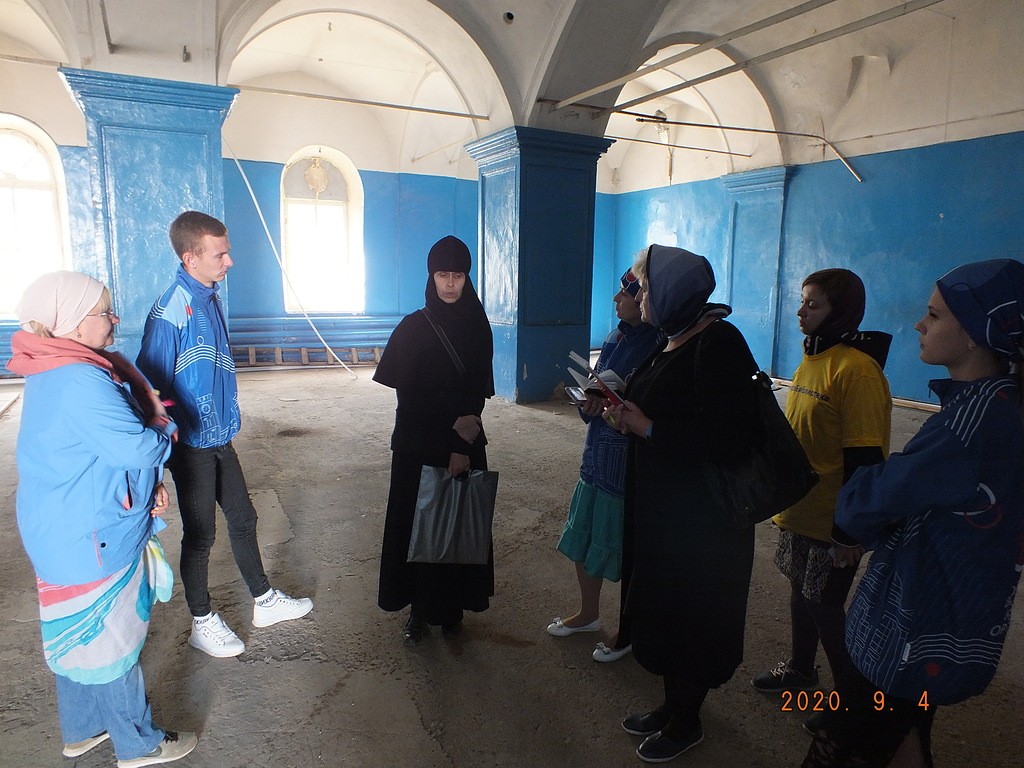 Свято-Тихвинский Богородицкий женский монастырь – первая по времени основания обитель Оренбуржья, основанная как женская религиозная община в 1847 г. По поручению игумении Пантелеимоны (Кривенковой), сестра Селафиила провела волонтёров по исторической территории, ребята побывали в полуразрушенных храмах, которые продолжают сохранять свою самобытность, даже претерпев разрушения и перестройки. Возможно, под советской краской сохранилась роспись стен и потолка, как в Троицком храме, который расписывали сами сестры-иконописцы в XIX веке.